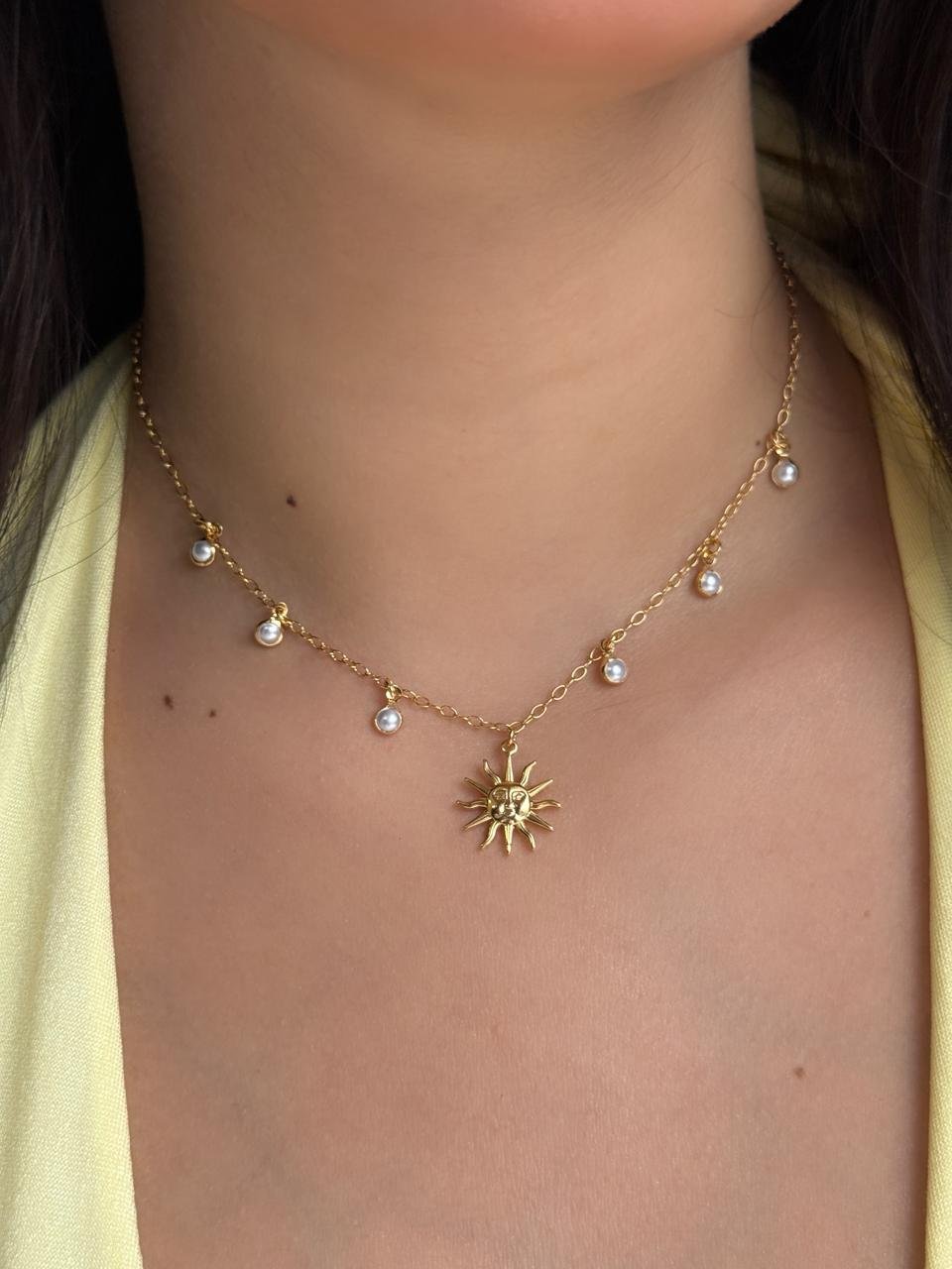 A Choker Pérola Sol Maréa Dourada é um acessório delicado e cheio de significado, inspirado na beleza do mar e na energia do sol. Com detalhes em pérola e um charmoso pingente de sol, essa peça traz leveza, brilho e sofisticação ao visual.