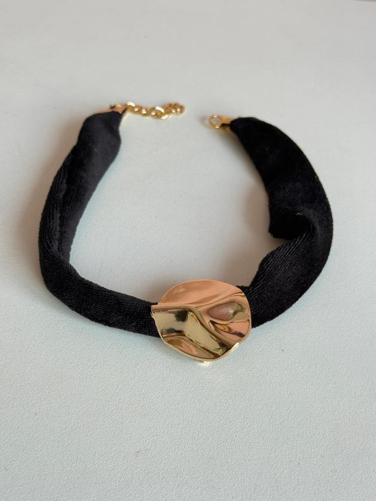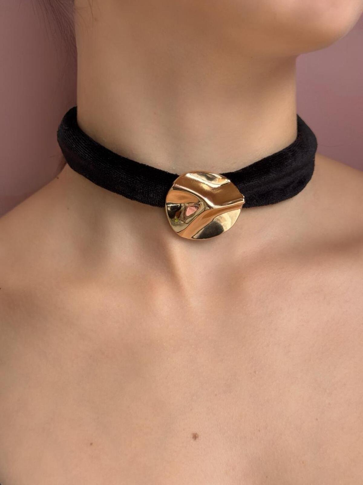 Choker de veludo com Pingente Botão Martelado