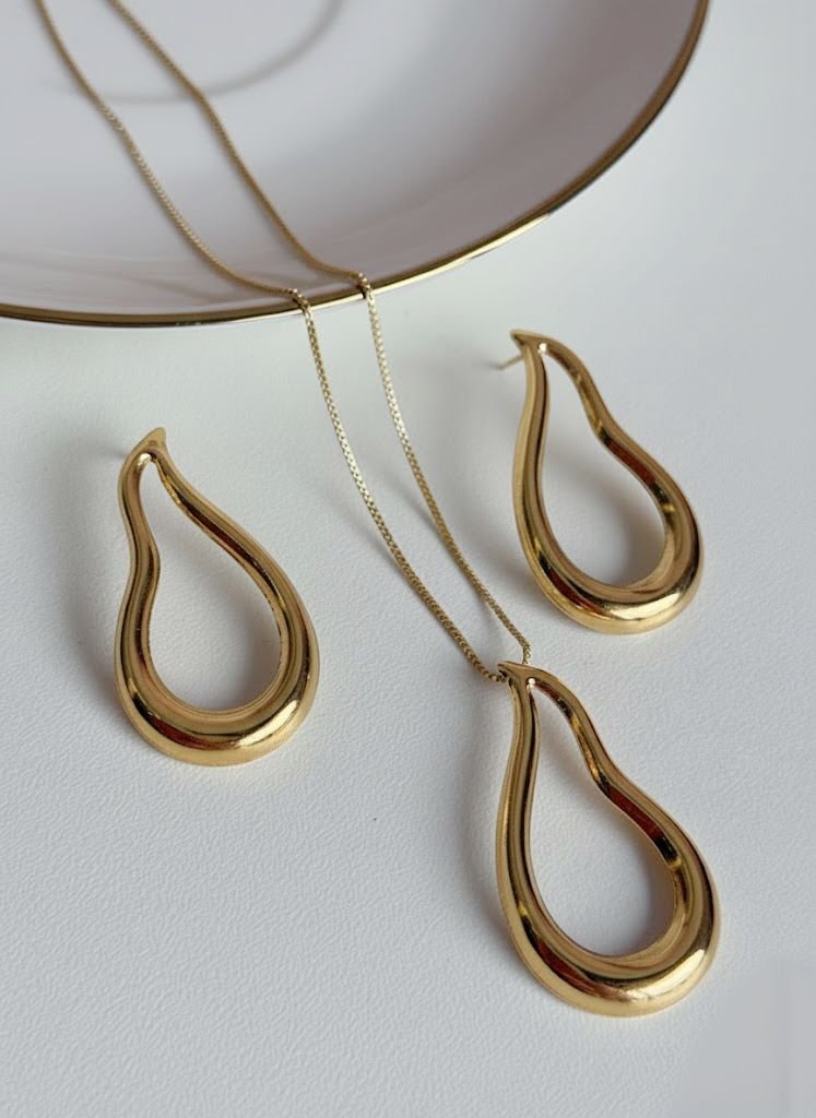 O Conjunto Gota Vazada Elegance é a definição de sofisticação e estilo atemporal. Seu design orgânico em formato de gota alongada traz leveza e um brilho marcante, valorizando o colo e o rosto com muita elegância.
